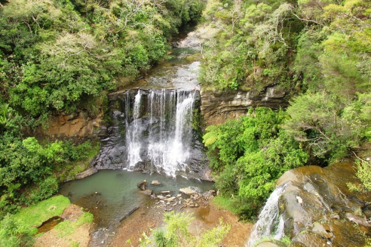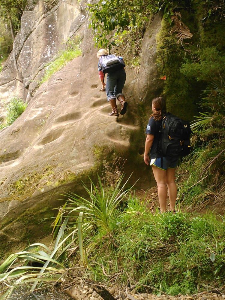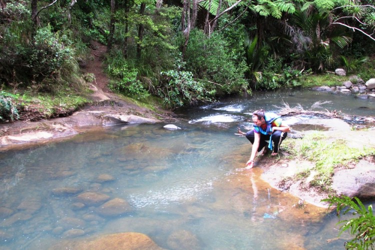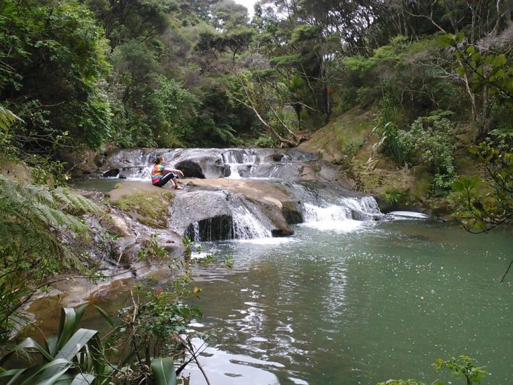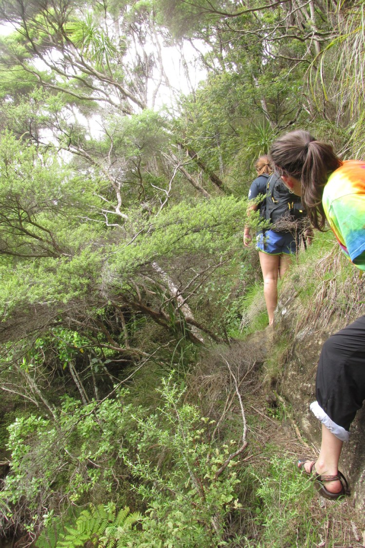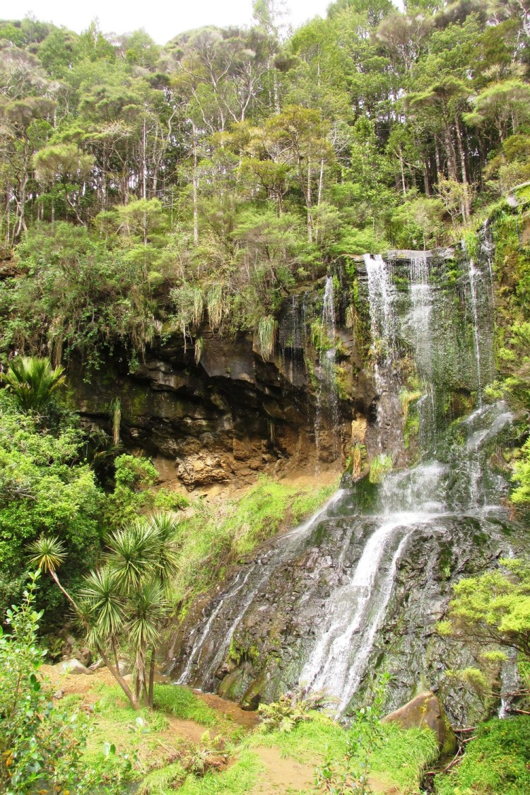 Our huts are on a gravel road 12 km from the nearest town, yet an entrance to the famous Goldie Bush Walk is on the same gravel road we’re staying on. There are waterfalls, views of West Coast beaches for miles and miles, and cool native trees. Every day over breakfast we talk about what our day might hold. We knew we’d need around four hours to do the hike right, and we’d either be at the surf school too long or have plans that evening and not be able to fit a hike in.