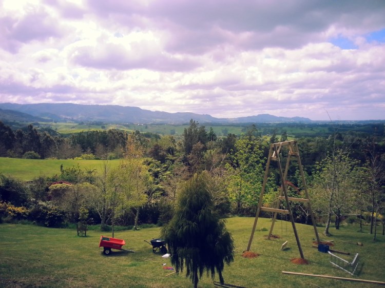 Our host, James, wanted to build a swing set for his darling kids. We started the construction of this 20 feet high, 460 pound wooden swing set in a shed a quarter of a mile from where he wanted it to go. It took a solid four days, working five hours a day. We had to hold 75 pound beams 10 feet in the air for 45 minutes at a time, so he could drill in the supportive braces after eyeing it from every angle over and over. I’m not exaggerating on this. 45 minutes. 10 feet in the air.
