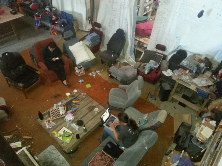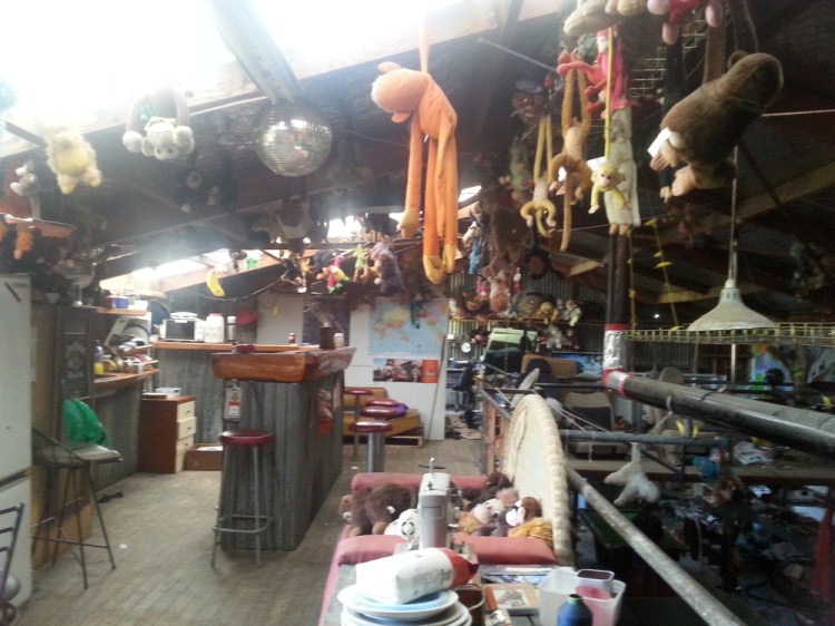 In addition to the zoo like atmosphere, there’s a pool table, a drum set, and about fourteen car seats (not for children, but seats taken out of cars). It is “crazy as.”