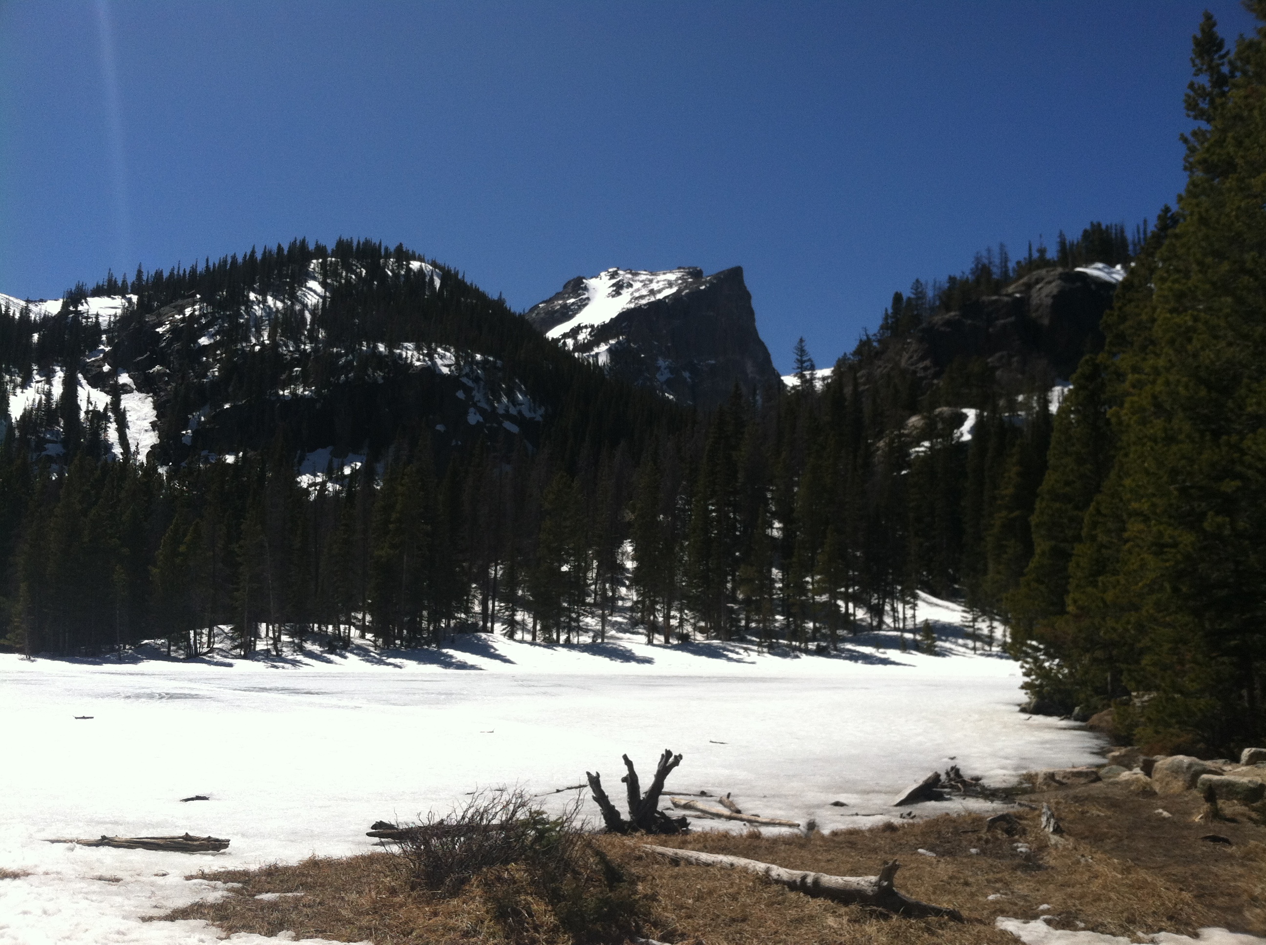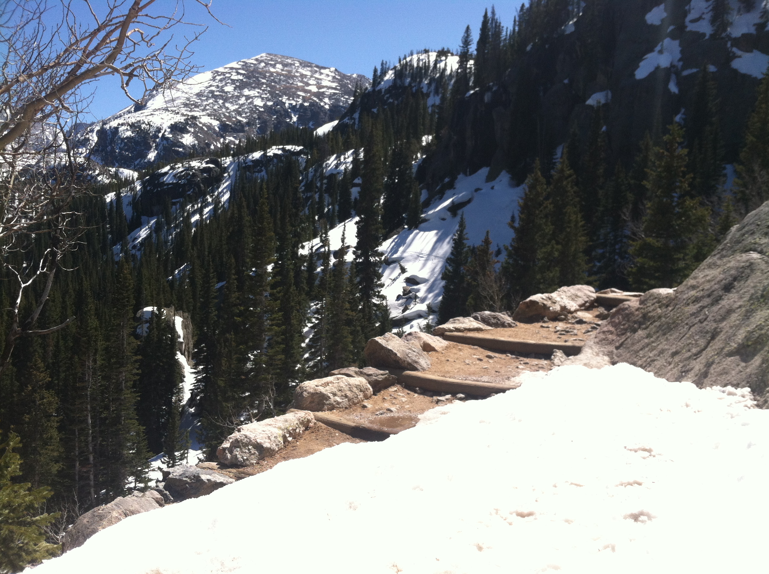 There is a parking lot that leads right to Bierstadt Lake, and that’s why this route is so great. It’s like taking Frost’s road less traveled and it was covered in more than just frost in April. It’s a bit longer and less crowded in the most beautiful way.