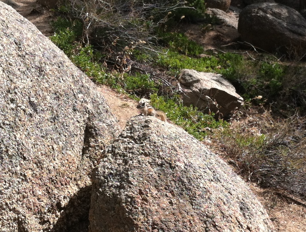This trail starting at the Lumpy Ridge Trailhead is not boring. For one, the view of the mountains is spectacular for most of the walk. Second, there are little chipmunks all over scattering about and being cute, cute, cute. Thirdly, the trail is not boring because there are steep steps and breaks might be necessary; they were for me. Gem Lake is small compared to the others, but it’s peaceful.